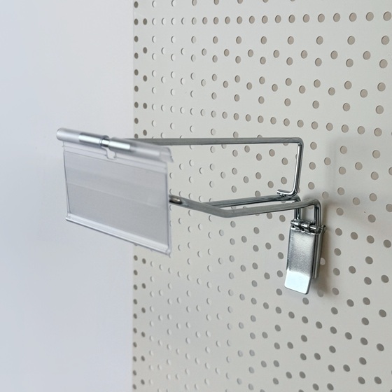 The ticket arm at the top allows you to easily attach a Ticket Carrier for displaying product information and prices. The prong below is designed to securely hold your items, offering a clean, organised display.