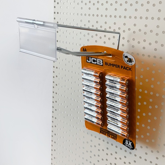 These euro hooks effortlessly slot into the pegboard holes, providing a secure and reliable hold. Unlike regular pegboard hooks, they do not require tilting to fit into the panel, so they save significant time and effort in merchandising and fit-out. They also lock into the panel, offering a far sturdier and robust fit.