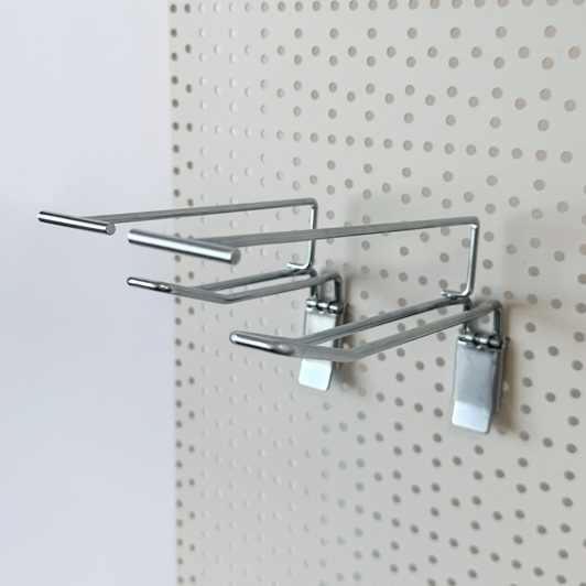 • Compatible with our Pegboard Perforated Wall Bay or metal peg panels with 25mm hole spacing