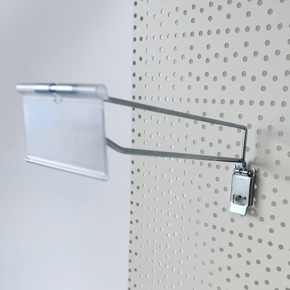 The ticket arm at the top allows you to easily attach a Ticket Carrier for displaying product information and pricing. Below, the prong is designed to securely hold your items, offering a clean, organised display.