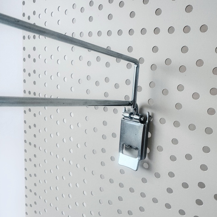 - Compatible with our Pegboard Perforated Wall Bay or metal peg panels with 25mm hole spacing