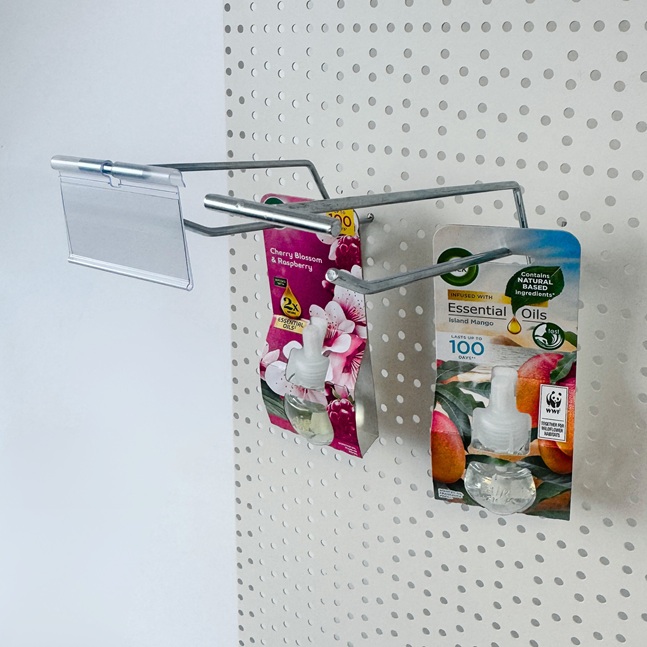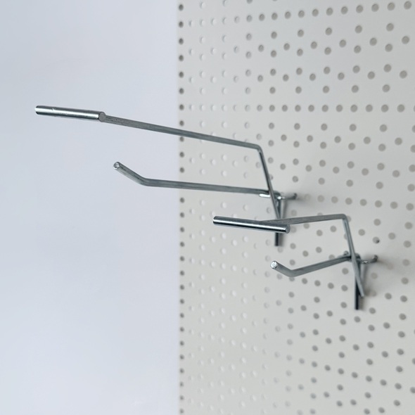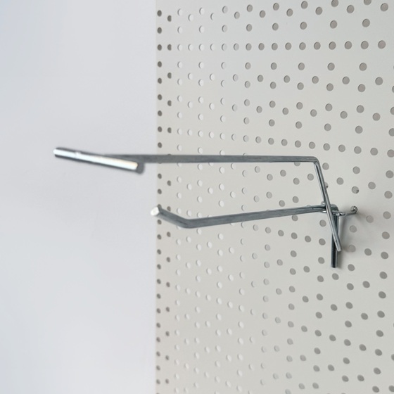 These single-prong pegboard hooks effortlessly slot into the pegboard holes, providing a secure and reliable hold. The ticket arm at the top allows you to easily attach a Ticket Carrier for displaying product information and prices. The prong below is designed to securely hold your items, offering a clean, organised display.